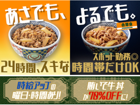吉野家スタッフ/日払いあり!バイトデビュー・高校生も歓迎!まかないで吉牛が70%オフ!スポット勤務もOK!